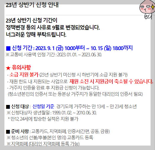 ▣ 경기도 청소년 교통비 지원 신청기간